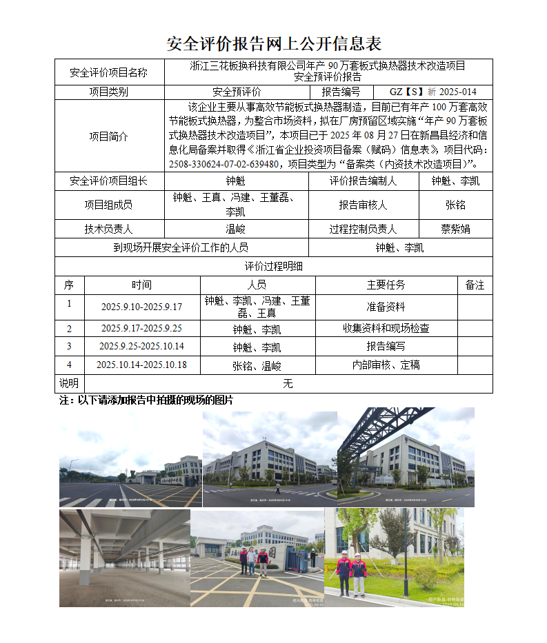 GZ【S】新2025-014浙江三花板換科技有限公司年產90萬套板式換熱器技術改造項目安全預評價網上信息公開表