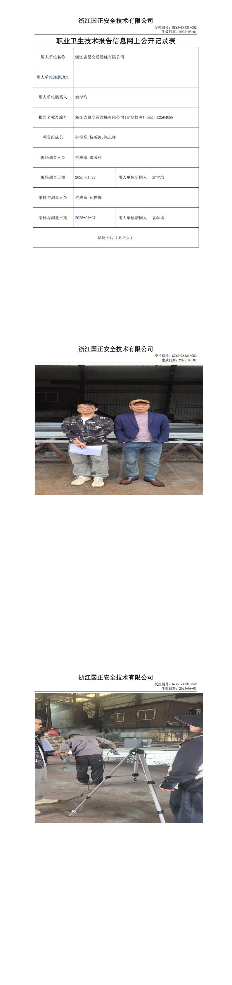 GZZJJC2504098_浙江吉昂交通設施有限公司工作場所職業病危害因素檢測報告網上公開信息表品有限公司