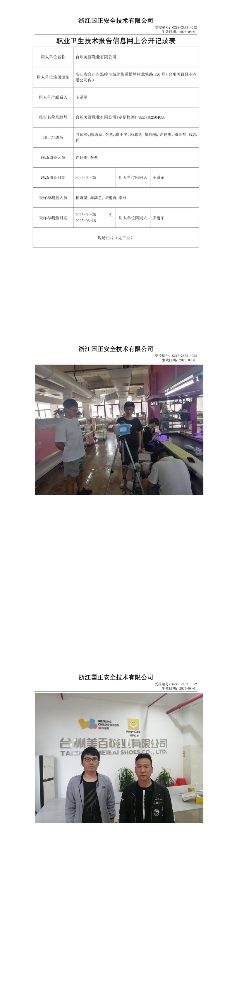 GZZJJC2504096臺州美百鞋業有限公司工作場所職業病危害因素檢測報告網上公開信息表